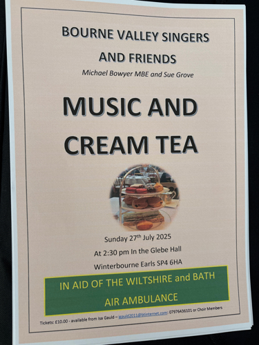 Come and join the Bourne Valley Singers and friends at Glebe Hall for an afternoon of music and cream tea.