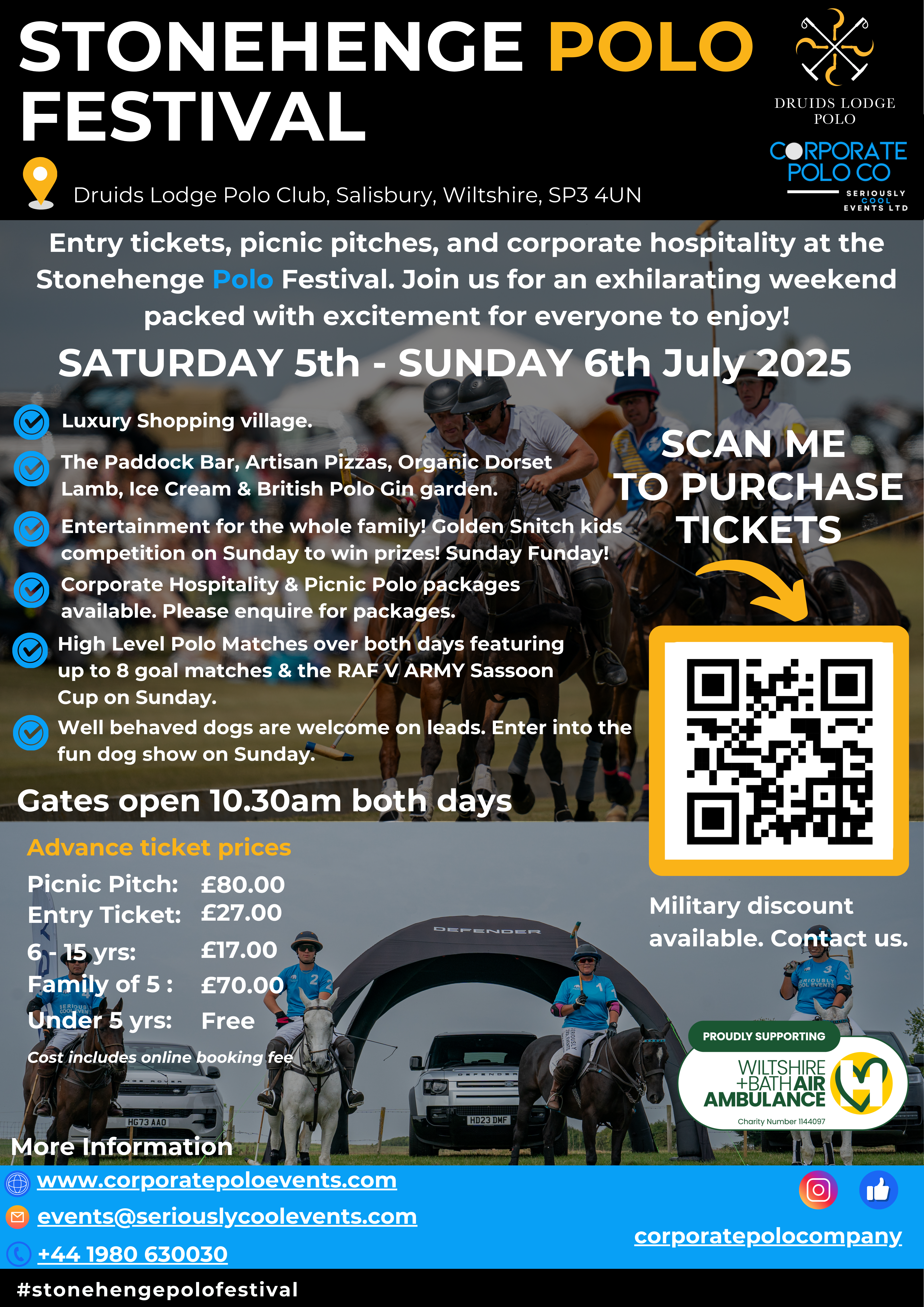 Enjoy a weekend of fantastic polo matches, with thrilling games reaching up to the 8-goal level. One of the key highlights will be the RAF versus Army match on Sunday 6 July, where teams will compete for the Sassoon Cup. Guests can explore a vibrant shopping village filled with stalls and a variety of food vendors and bars.