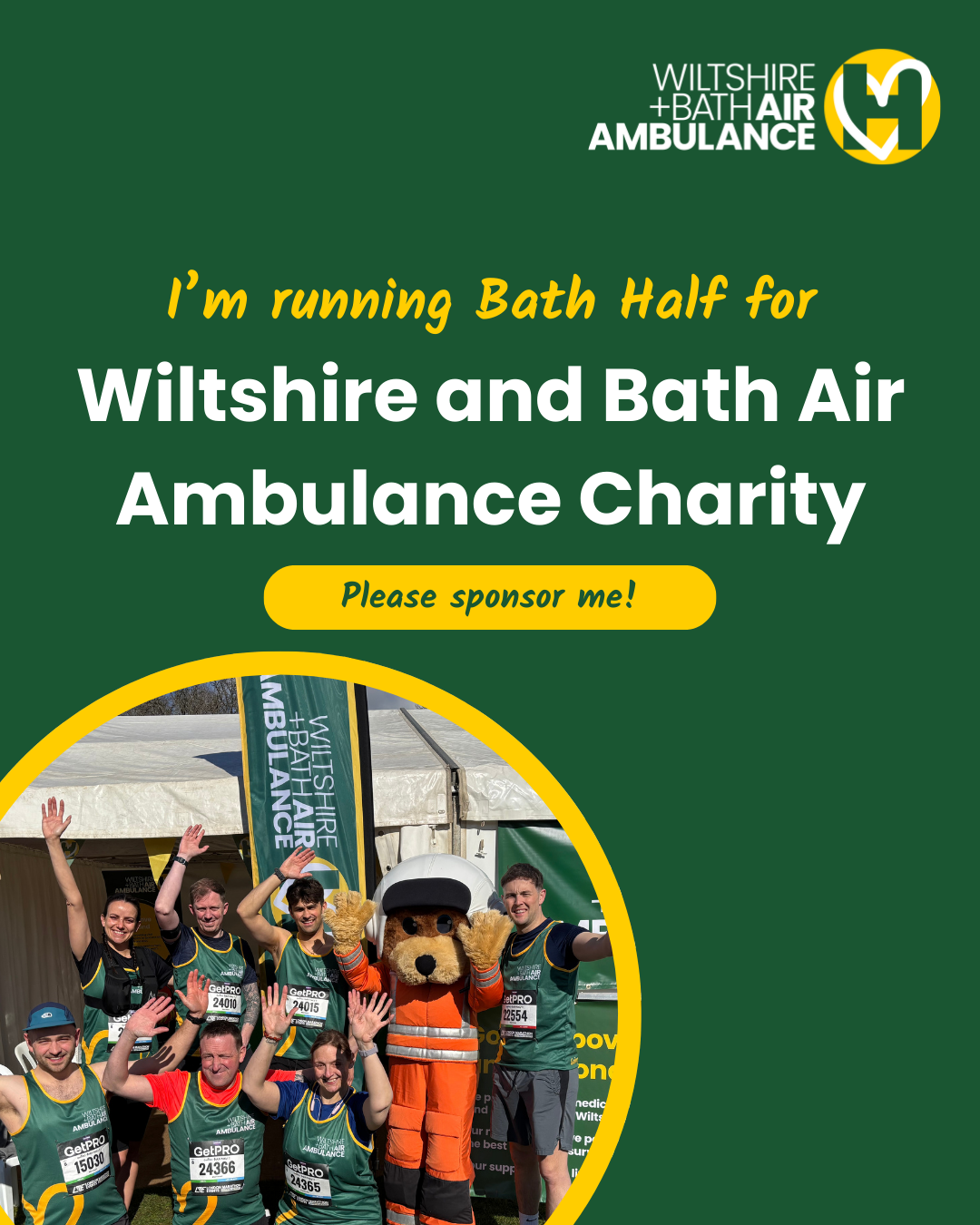 I’m taking on Bath Half marathon for an incredible local cause. Wiltshire and Bath Air Ambulance Charity are here for us when it matters most, by land and air. Please sponsor me and share widely: [insert your donation link]